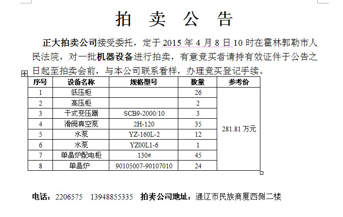 4月8日正大拍卖公告