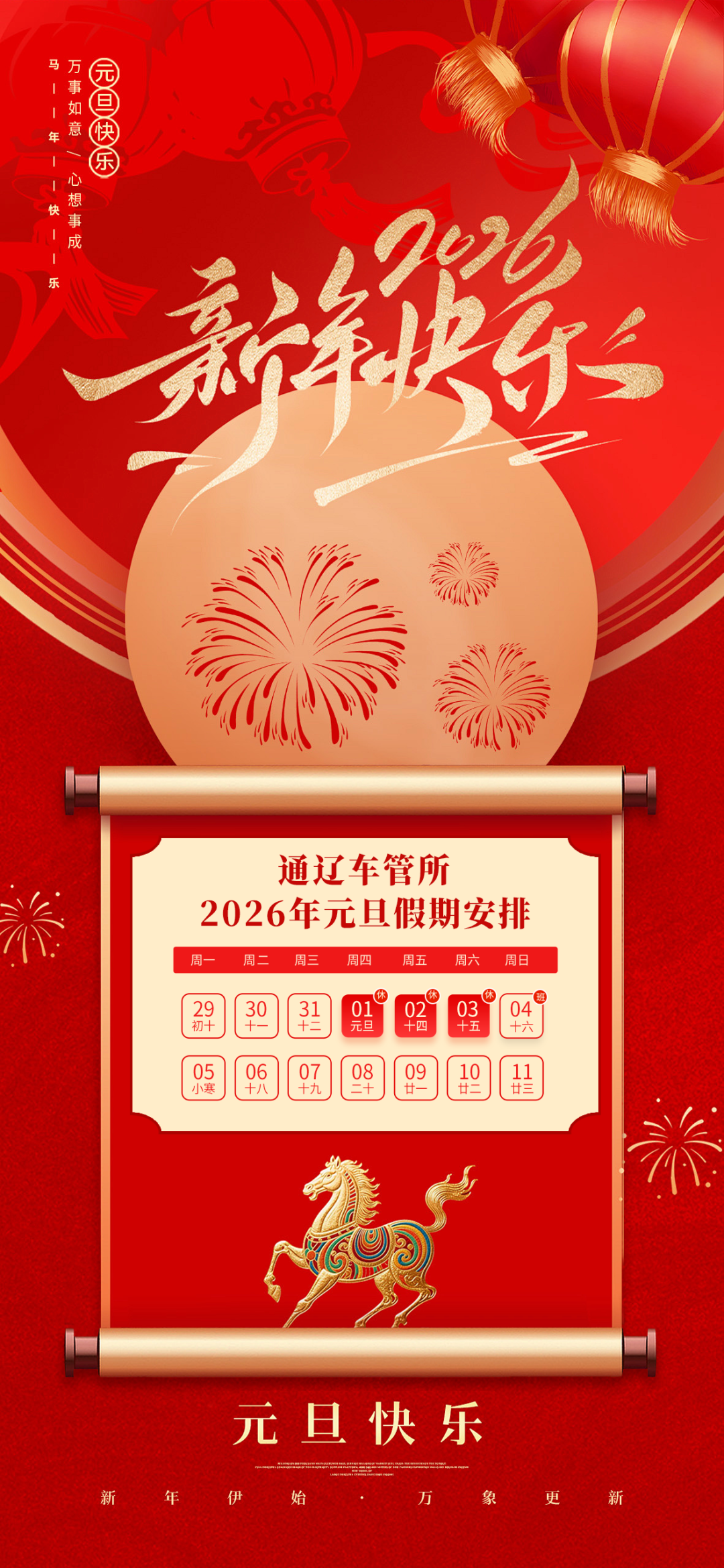 通辽车管所关于2026年元旦放假安排的通知
